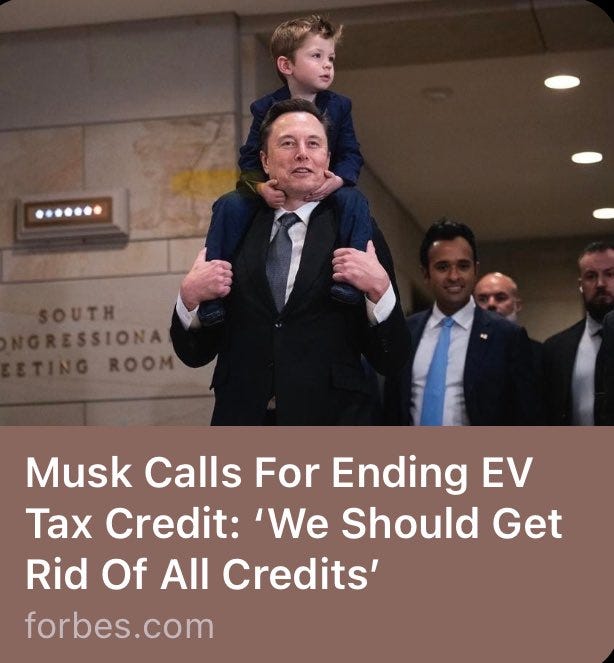 Musk himself has advocated for ending the $7,500 federal tax credit for EV buyers. In fact, just last December, he wrote: