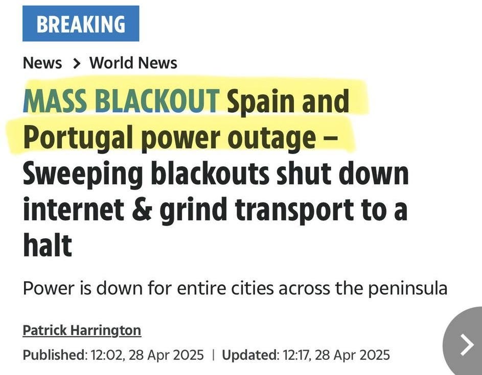 With Spain’s grid collapsing, neighboring Portugal — heavily reliant on interconnected flows — is dragged down too.