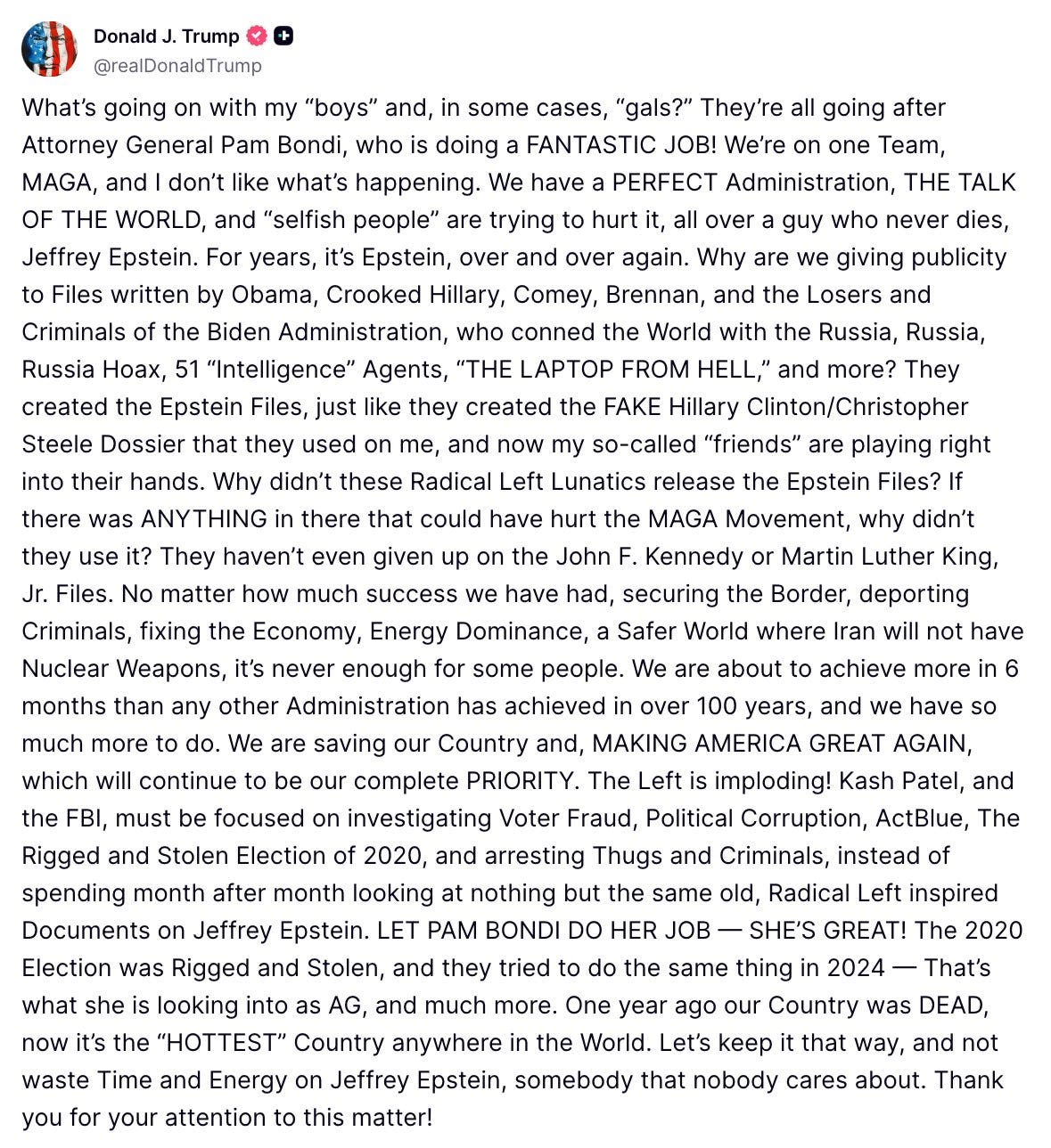 If you’ve been following the Epstein file (cover‑up) story, chances are you’ve already seen that recent post by President Trump on Truth Social.