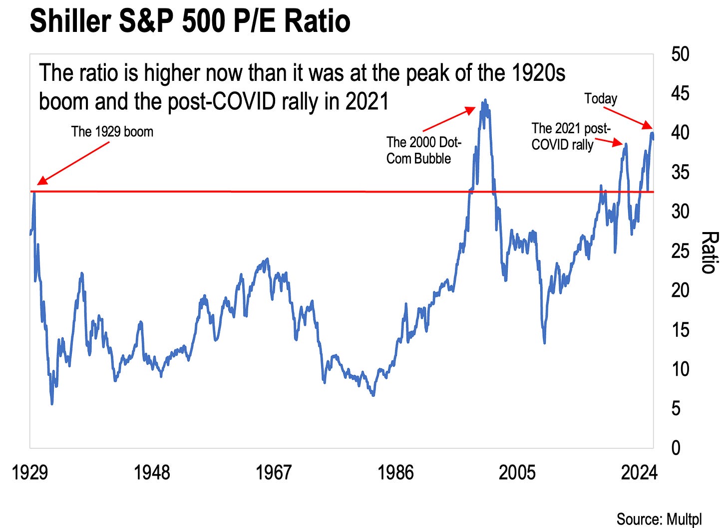 Right now, the CAPE is sitting at almost 40. Take a look.